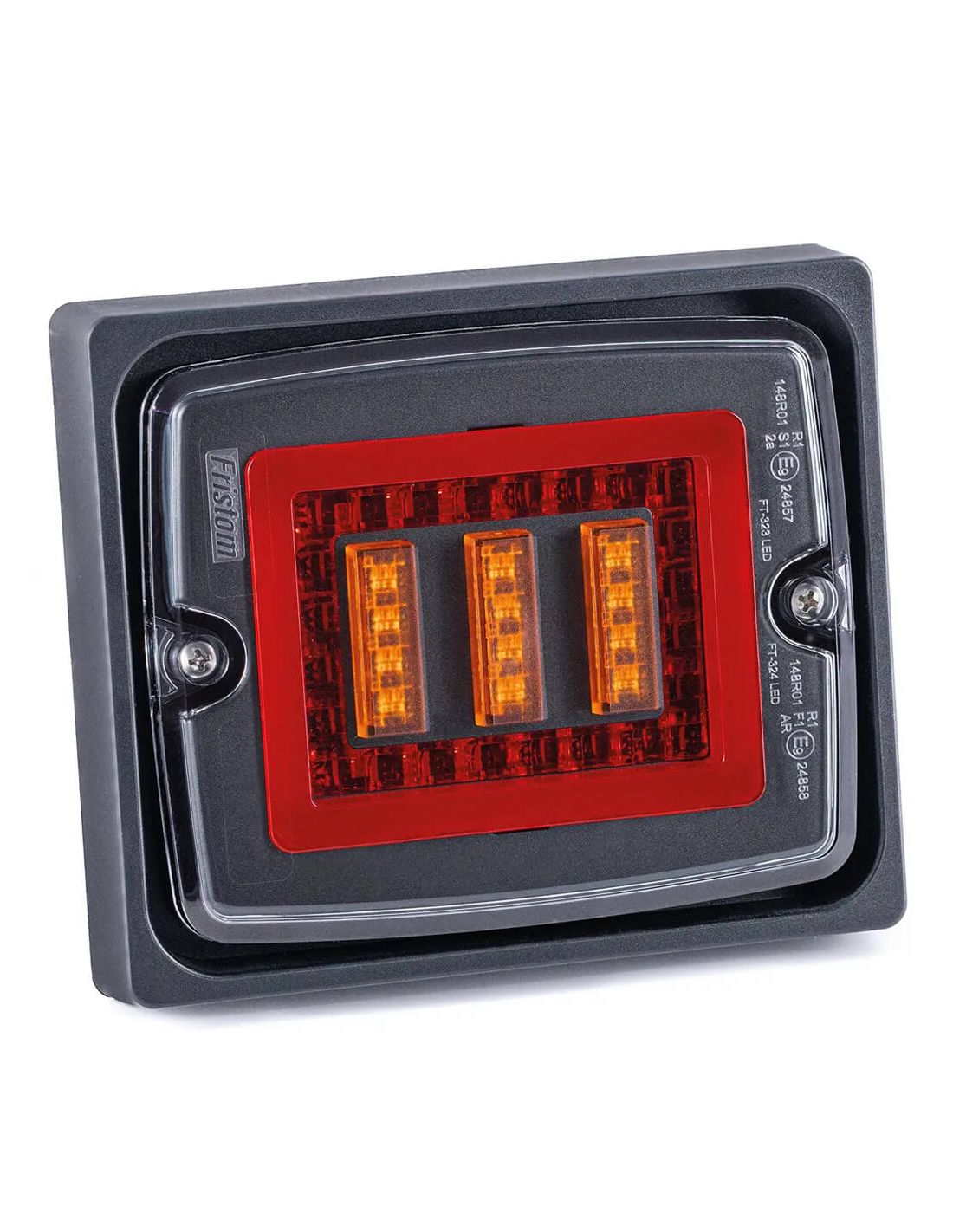 Piloto trasero LED FT-323 LED FR1 con marco de montaje rectangular. 3 funciones: posición NEON, freno e intermitente. Compatible 12V-30V con opción de intermitente dinámico y homologación E9.