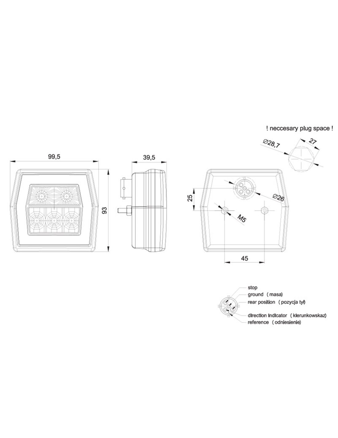 Dimensiones: ↕ 93 mm | 99,5 × 39,5 mm.