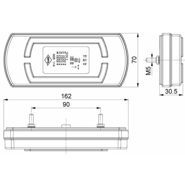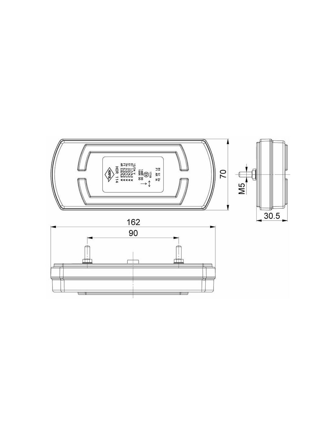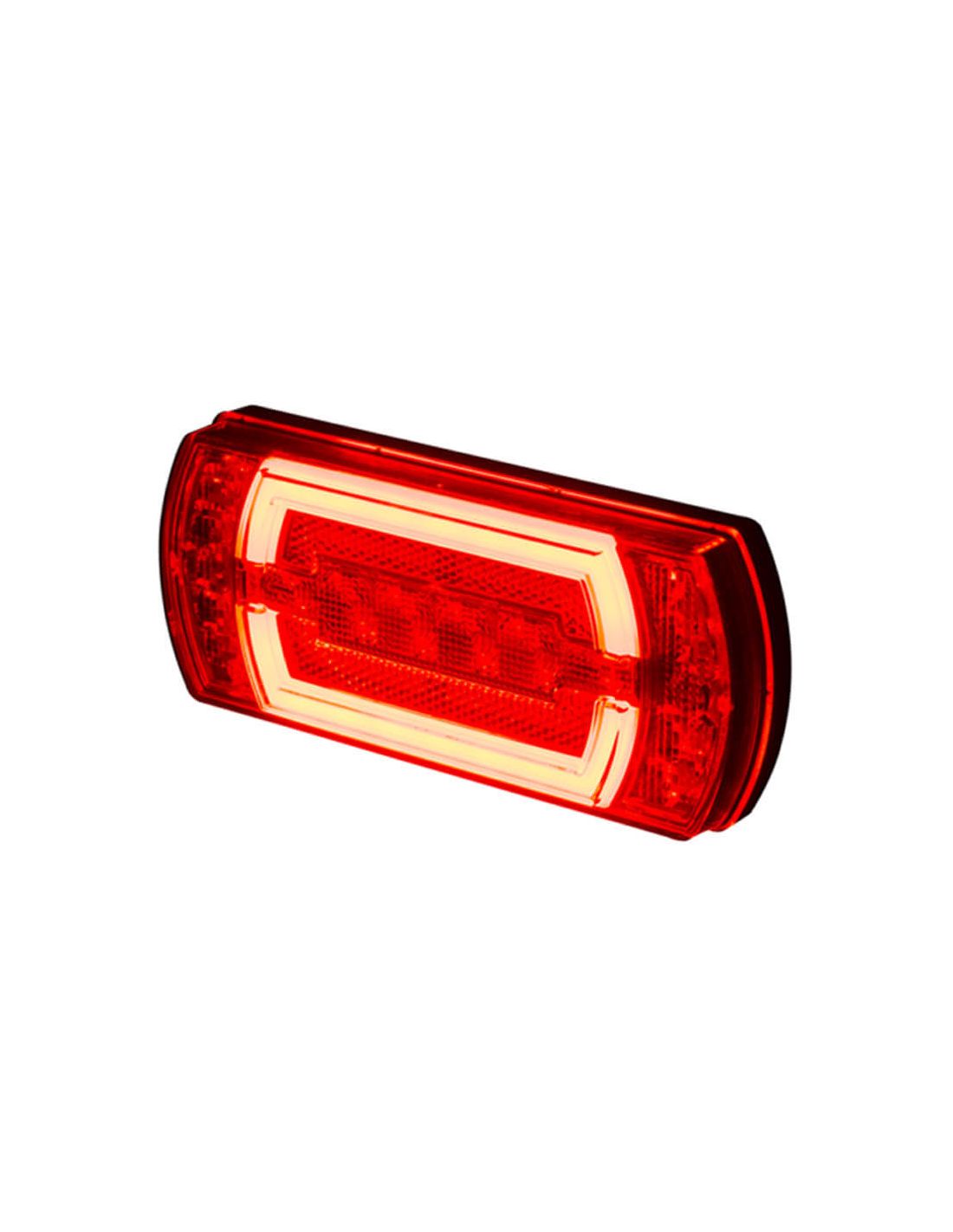 Piloto LED trasero con forma rectangular, incluye 5 funciones con la luz de posición efecto Neon y incluye 1 metro de cable para su instalación. Este modelo es totalmente sumergible y cuenta con los códigos de Homologación R1, S1, 2A AR y F1. Tiene mano, selecciona el lado correcto, es valido para 12V y se puede instalar en Horizontal y en Vertical.