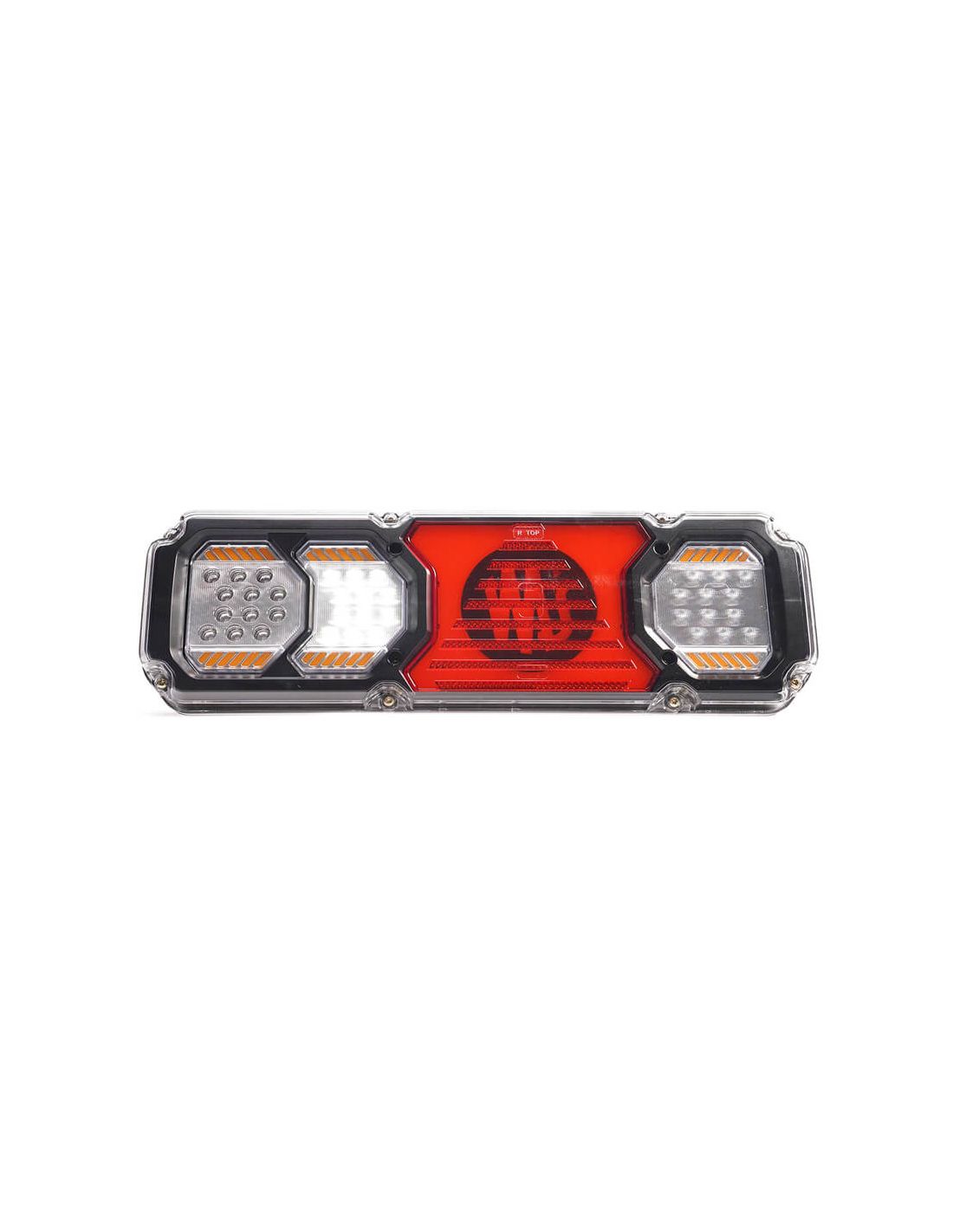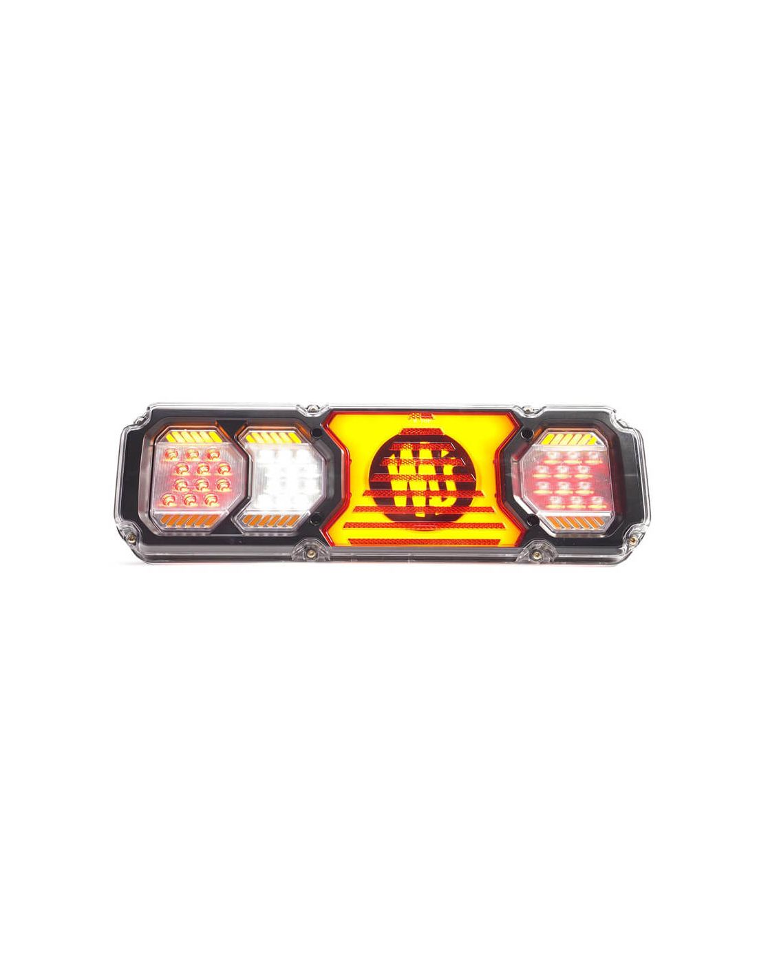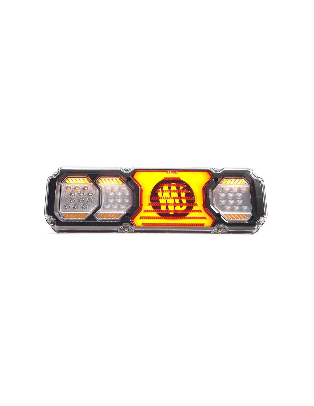 El piloto trasero LED WAS Heavy Beauty con carcasa gruesa y logo retroiluminado combina diseño premium, máxima resistencia y todas las funciones necesarias para vehículos industriales, remolques, maquinaria agrícola y transporte pesado. Incluye freno, posición, intermitente dinámico, marcha atrás, antiniebla, triángulo reflectante y luz de matrícula inferior, todo en un único módulo LED de alta durabilidad.
