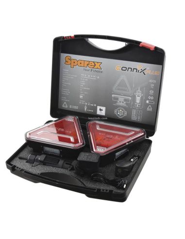 Kit de Pilotos LED inalámbricos Connix Plus Led que consta de 2 Pilotos trasero con triangulo LED con 4 funciones y con base magnética, un cable micro USB para cargar los dos pilotos a la vez, cargador de 220V y cargador de mechero, piña Macho de 7 Pines para instalar en la base hembra, esta piña incluye resistencias (Canbus) que evitan que el vehículo indique el fallo de bombilla fundida debido al bajo consumo de estos pilotos LED. El kit Sparex Connix Plus LED funciona tanto en instalaciones de 12V y entre el receptor y los pilotos puede haber una distancia máxima para que el funcionamiento de los Connix LED sparex sea correcto de hasta 20 metros.