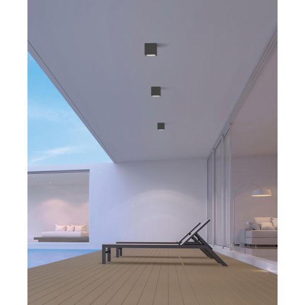 El diseño robusto y resistente del plafón, junto con su acabado en antracita texturado, asegura su durabilidad y resistencia a las inclemencias del tiempo. Con certificación IP65, el plafón es resistente al polvo y al agua, garantizando su funcionamiento óptimo en cualquier condición meteorológica.