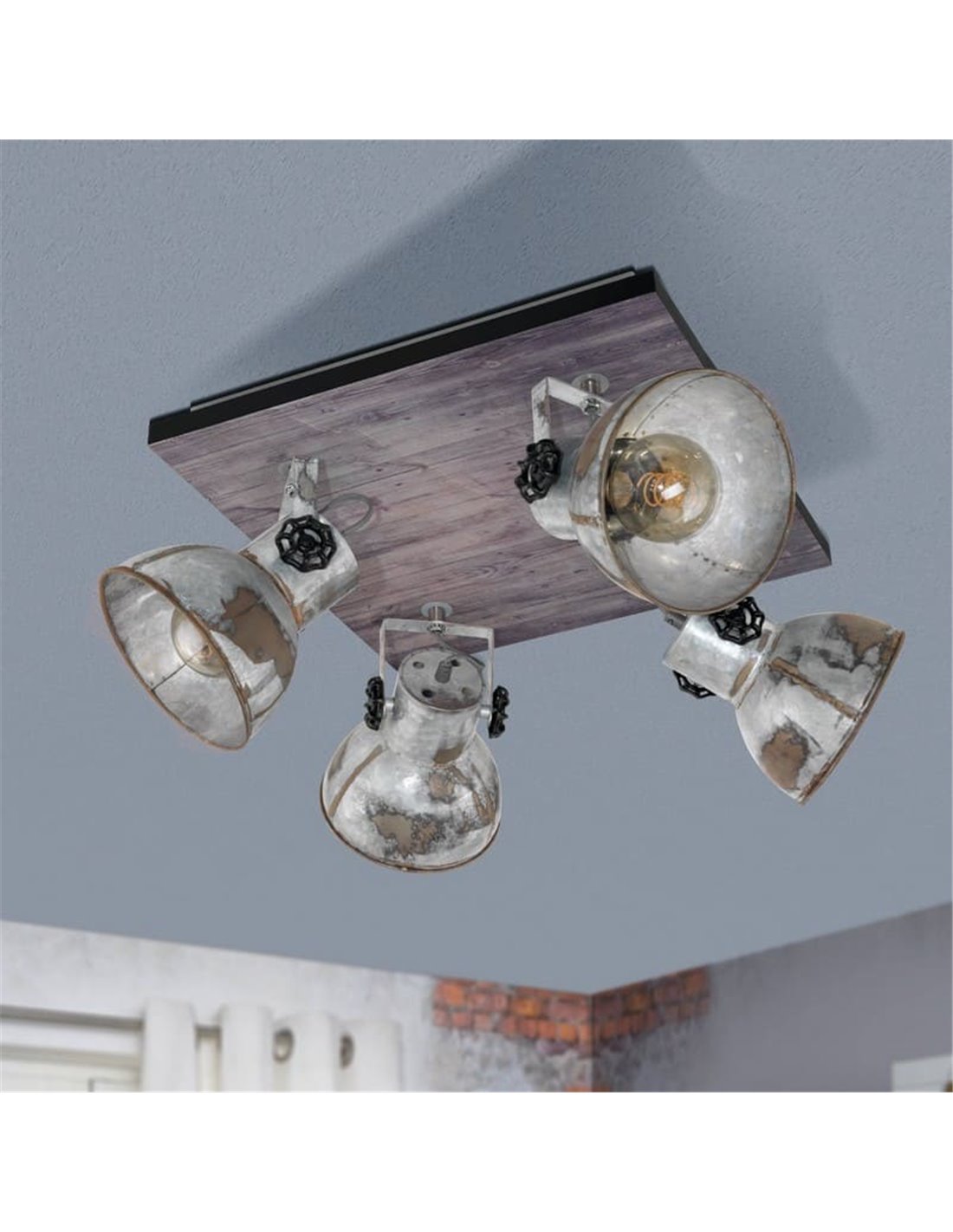 Plafón Cuadrado de Techo BARNSTAPLE de EGLO - Estilo Industrial con 4 Focos Móviles