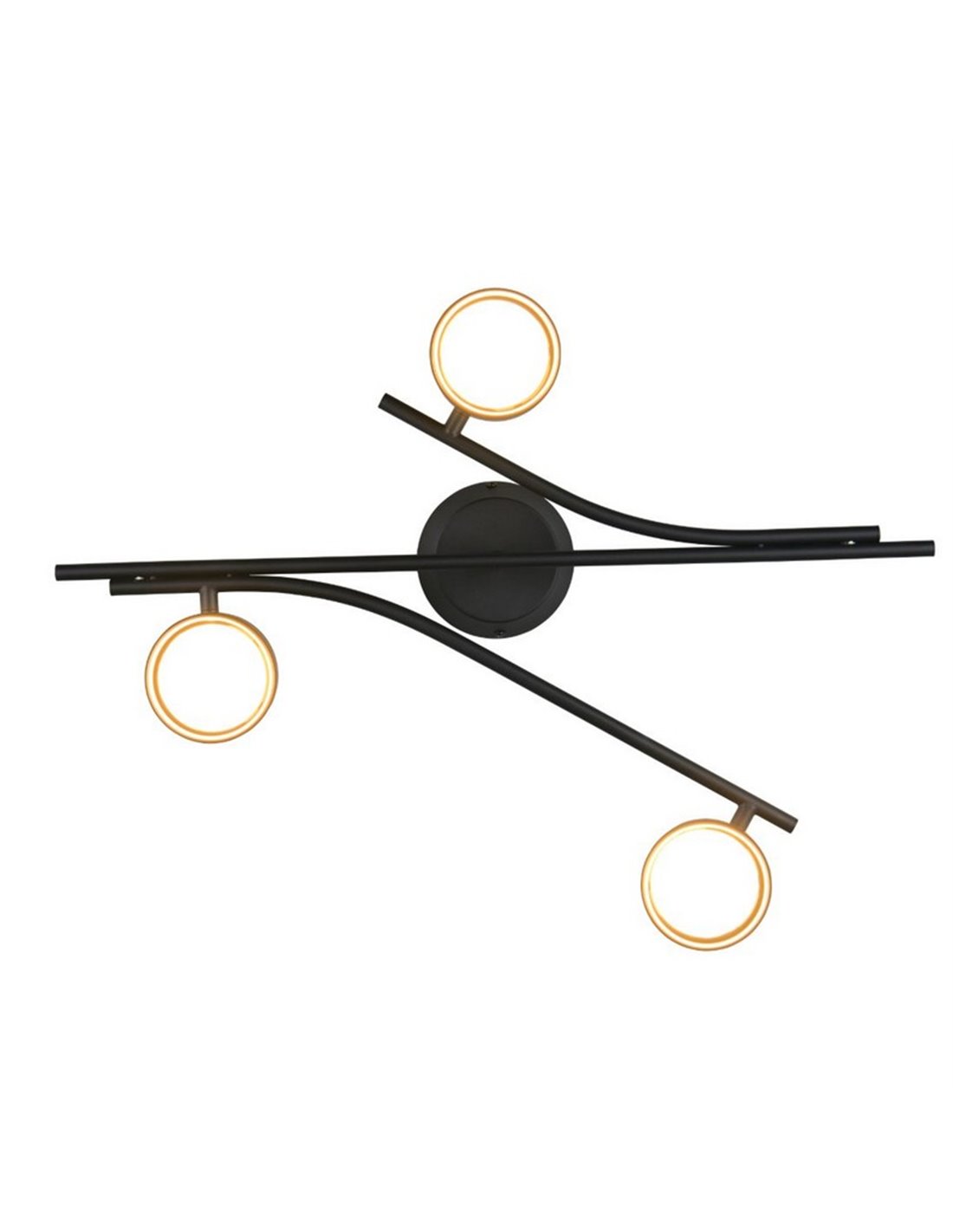 Plafón de techo CODA con 3 focos orientables negro/dorado