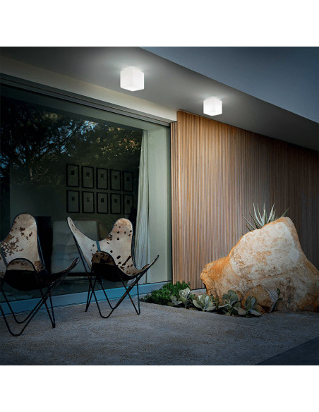 La lámpara de techo pl1 de la colección Luna se presenta con un diseño en forma de cubo que irradia elegancia y es muy fácil de combinar gracias a su acabado en blanco. Para emitir luz requiere de una bombilla con una potencia máxima de 42W(en el caso del modelo D20 que no viene incluida) y se recomienda portalámparas E27 POWER 10W GOCCIA 4000K. El modelo D11 sí incluye bombilla con una potencia de 3W, un flujo lumínico de 320 lúmenes con una temperatura de color de 4000K que otorga un ambiente neutro en la estancia exterior como porches, terrazas, jardines, etc.