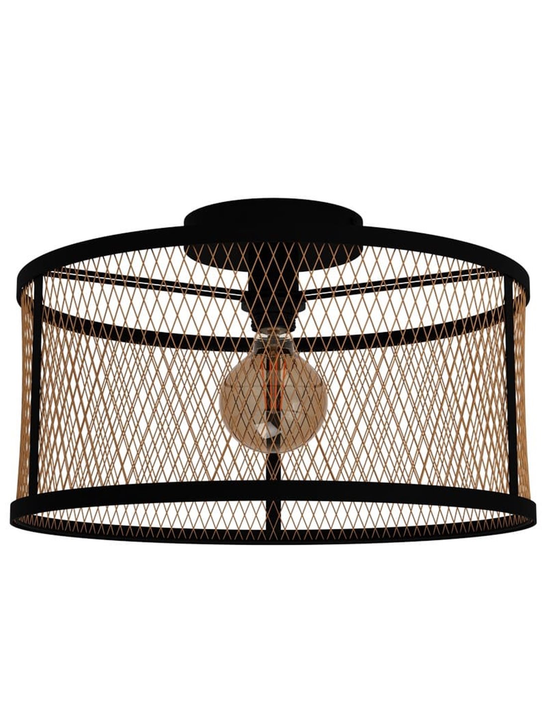 Plafón de techo estilo moderno DELLOW de Eglo, con pantalla de metal desplegado en latón cepillado y borde negro. Compatible con bombilla E27 (no incluida). Añade elegancia y estilo a cualquier espacio.