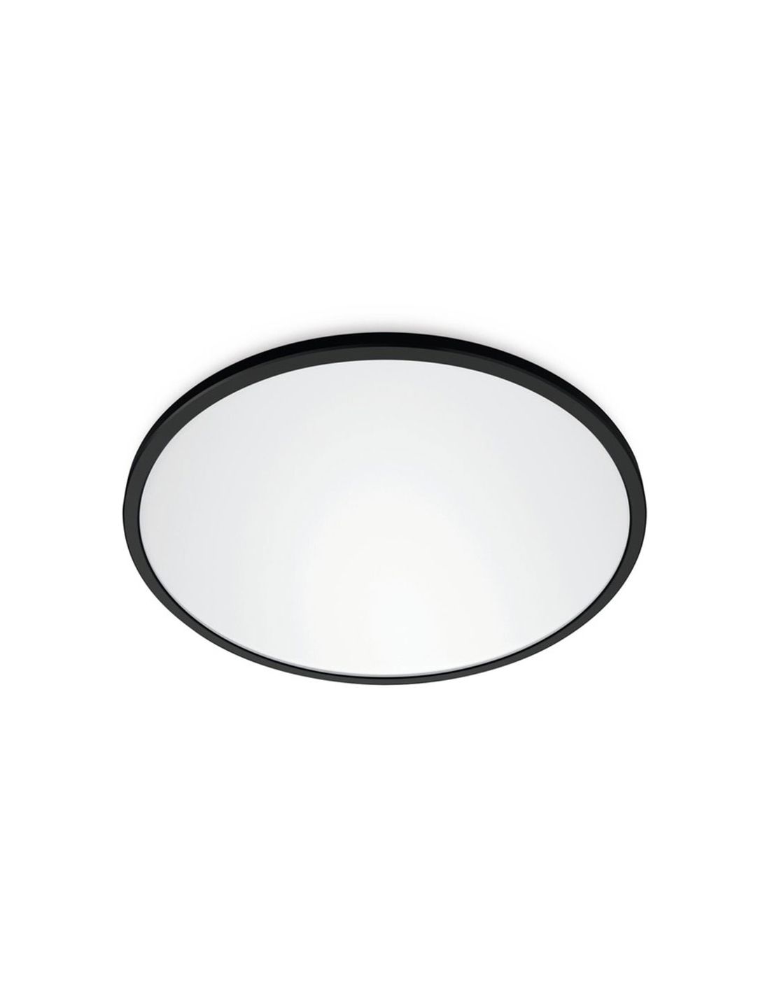 Slim es un plafón de techo de Philips fabricado con plástico de alta calidad y acabado en color blanco. Ha sido diseñado para uso en zonas interiores como el dormitorio, habitaciones de estudio, pasillos, despachos o salones. Con su forma redonda y su aspecto moderno es capaz de encajar en cualquier tipo de interiorismo contemporáneo. Tiene unas dimensiones de 2,8 cm de altura y 55 cm de diámetro. También disponible en acabado negro.