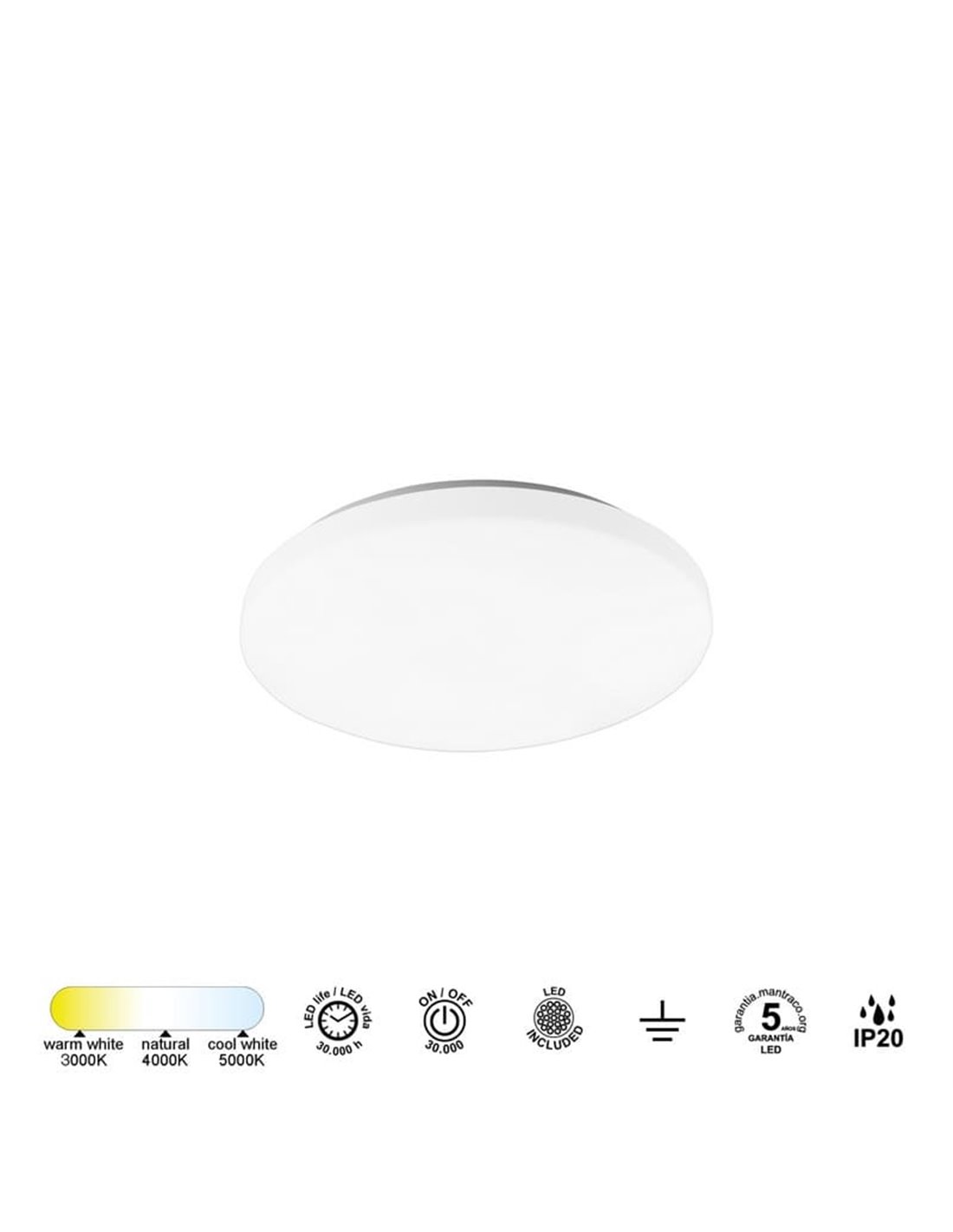 - Alta Potencia y Eficiencia: Con 24W de potencia, este plafón ofrece un flujo luminoso de 2.040 lúmenes, garantizando una iluminación brillante y uniforme en espacios amplios.