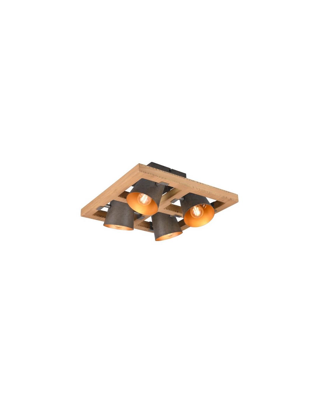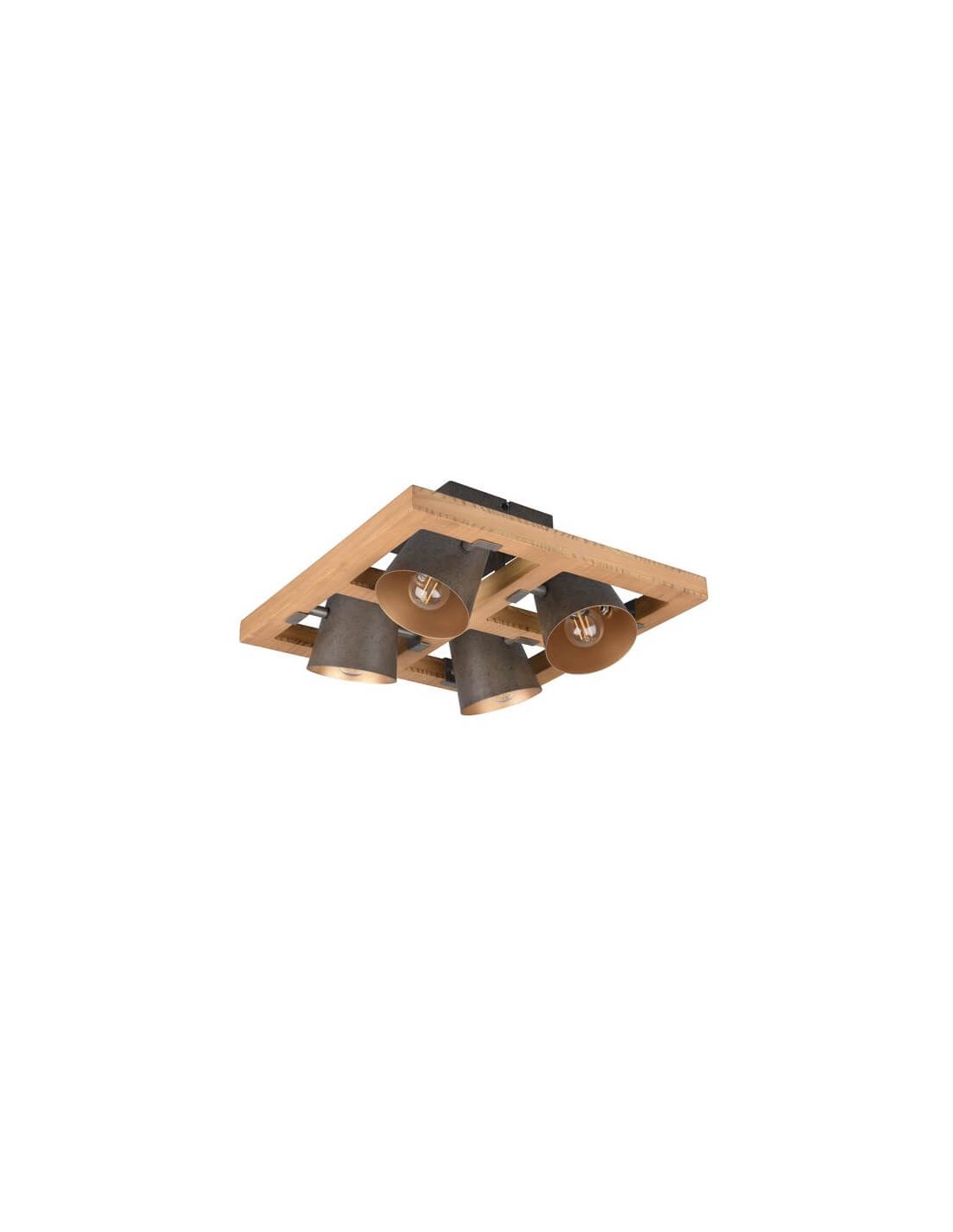 Plafón de techo LED BELL 4 luces, madera y metal, focos orientables IP20