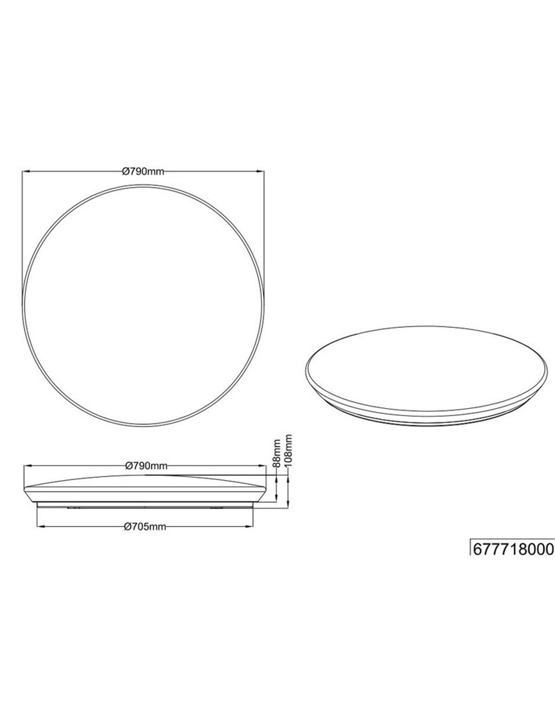 El plafón LED NAGANO destaca por su diseño moderno con efecto estrella y su gran diámetro de 79 cm, perfecto para iluminar amplios espacios como salones o comedores. Su potencia de 72W y 8500 lúmenes garantiza una luz intensa y eficiente.