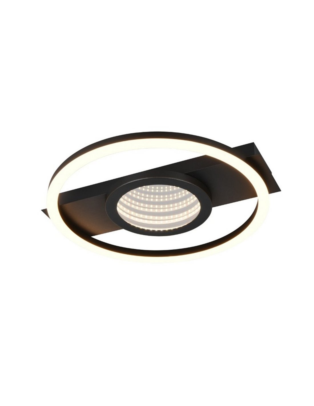 El plafón LED WHEELER en color negro presenta un diseño redondo y moderno, ideal para iluminar espacios interiores con un estilo contemporáneo. Su luz en blanco cálido (3000K) crea un ambiente acogedor y relajante, perfecto para áreas como salones, dormitorios y pasillos.