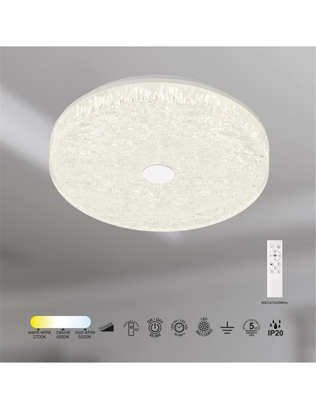 Plafón de techo LED redondo DRACO grande Ø40cm regulable 30W 4000lm, 2300+3000+4000K...