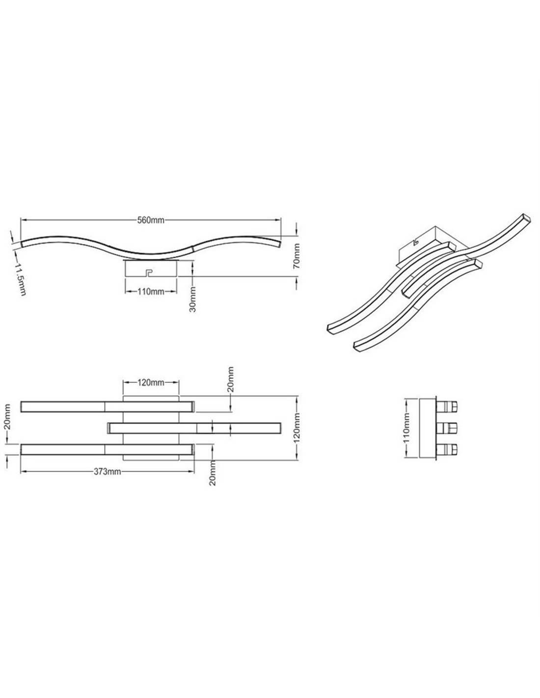 Plafón de techo LED ROUTE 2 tiras 56cm 5W 2x600lm luz cálida 3000K IP20 Negro