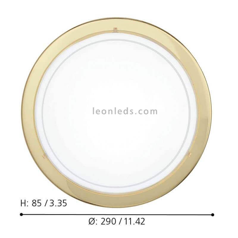 Está fabricado con un cuerpo redondo de acero con acabado en latón que actúa como base del plafón. La pantalla que incluye es de vidrio lacado con acabado en blanco, de modo que ofrecerá una iluminación homogénea que no resultará molesta para la vista.