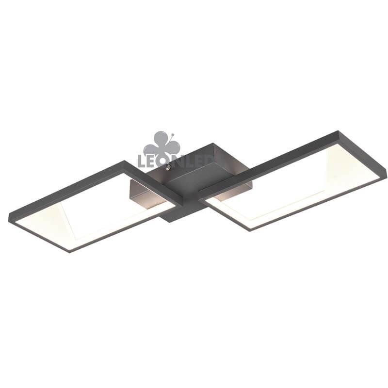 Este plafón de techo LED con 2 rectángulos de color antracita es perfecto para instalar en el techo de estancias con dimensiones medianas y pequeñas gracias a su intensidad lumínica 1.400Lm. Aportará luz y modernidad al techo de tu salón, en el hall de entrada de tu vivienda o en tudormitorio principal.