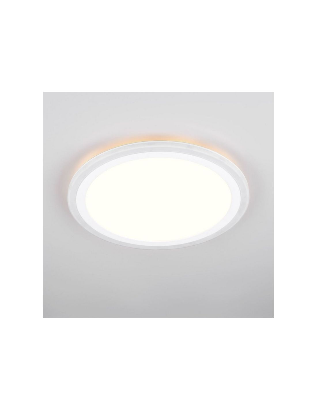 El Plafón LED de Techo Redondo CORA es una excelente elección para quienes buscan iluminación funcional y ambiental en un solo producto. Con un diámetro de 32 cm, este plafón cuenta con dos fuentes de luz independientes: la luz principal de 11W que ofrece una intensidad de 1800 lúmenes y una luz secundaria de ambiente de 1,2W con 210 lúmenes, ambas en un tono cálido de 3000K.