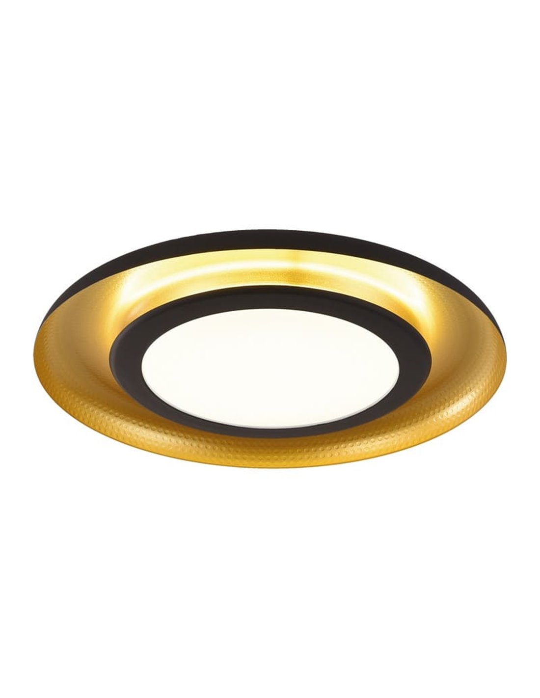 Shiitake Plafón 3740/55 con LED de 45W, 3000K y 3420lm. Acabado en negro texturado y oro, con control inteligente Casambi.