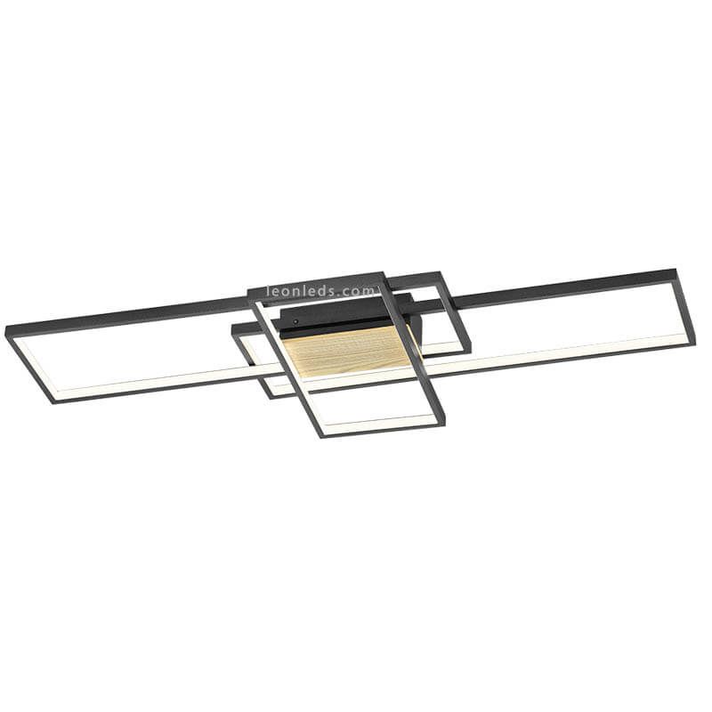 El Plafón LED madera y negro de la colección Tucson de Trio Lighting esta formado por ,3 rectángulos metálicos los cuales emiten la luz hacía la parte interior. Incorpora tecnología LED con una potencia de 35W, un tono de luz de color blanco cálido de 3.000K y una intensidad de 3.300Lm. Este Plafón LED dispone de regulación de intensidad integrada que nos permite elegir 3 niveles de potencia de luz que podemos regular desde el propio interruptor de la pared sin necesidad de realizar una instalación adicional.
