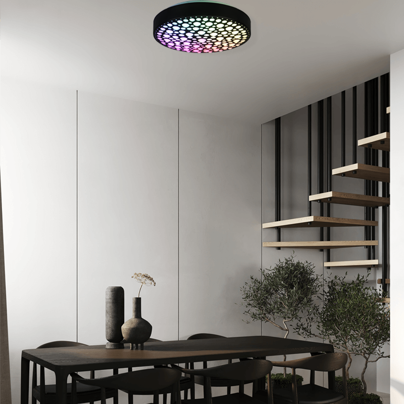 El plafón Chizu negro, fabricado en plástico y en elegante acabado negro se adapta a tus estancias debido a que combina de manera óptima en salones, dormitorios, cocinas o despachos. Además implementa tecnología LED con una potencia de 22W, un flujo de 2500 lúmenes y una temperatura de color regulable desde 2700k hasta 6000k permitiéndote crear distintos escenarios de color y de luz.