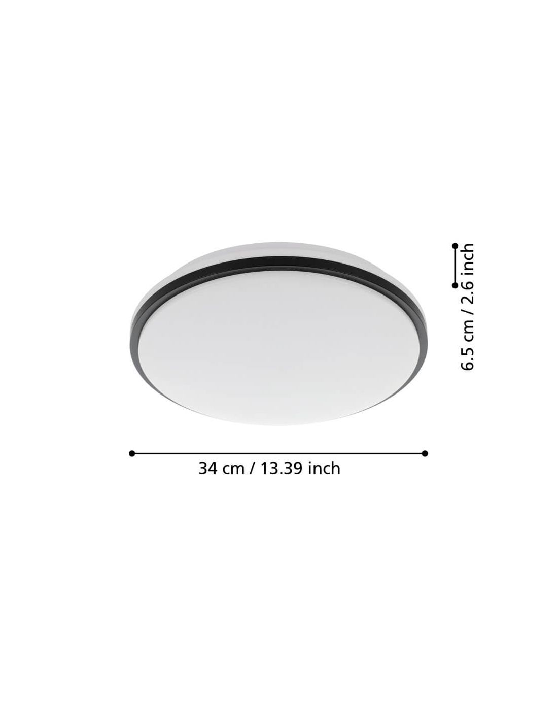 Plafón LED EGLO PINETTO 900366 de 15,6W en color blanco y negro. Ø340mm. IP44 para baño o cocina. Luz neutra 4000K. Diseño moderno para techo o pared.
