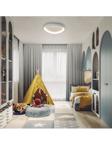 El plafón LED Niseko II blanco funciona con una potencia eficiente de 42W y con tecnología LED para proporcionar una temperatura de color de 2.700K a 5.000K con 2.500 lúmenes.