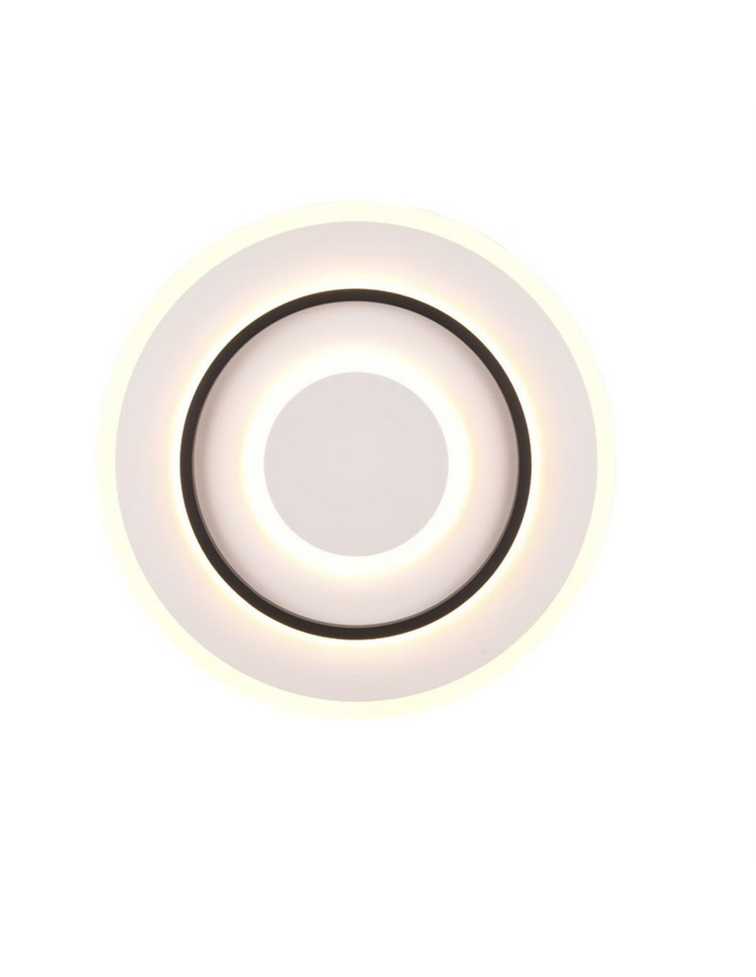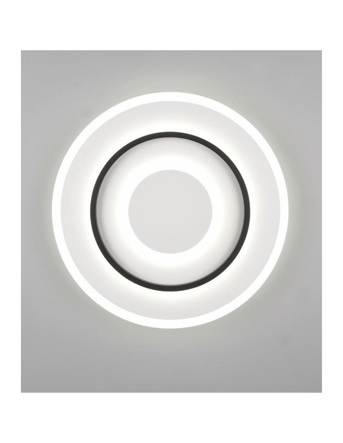 El plafón LED JORA combina un diseño redondo de Ø41 cm con acabados blanco y negro mate para aportar un estilo moderno y elegante a cualquier espacio. Su perfil ultrafino de 6,5 cm encaja a la perfección en techos bajos o ambientes minimalistas, aportando una iluminación uniforme y decorativa.