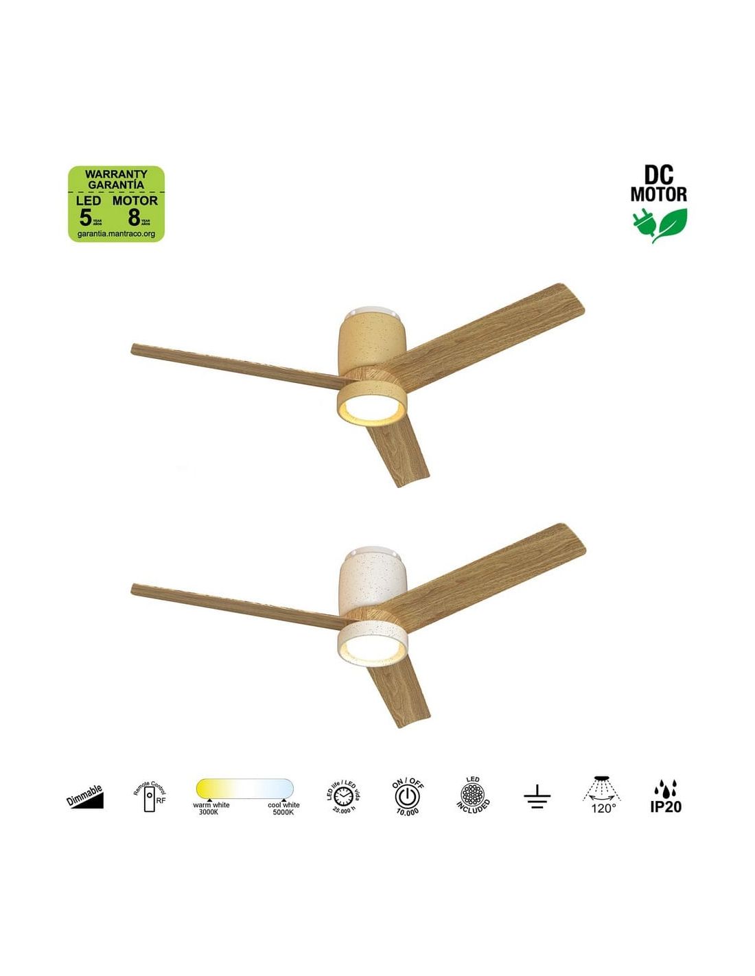 Ventilador de techo LED 30W USHUAIA 35W Blanco+Madera 2700K-5000K, 2400 Lm