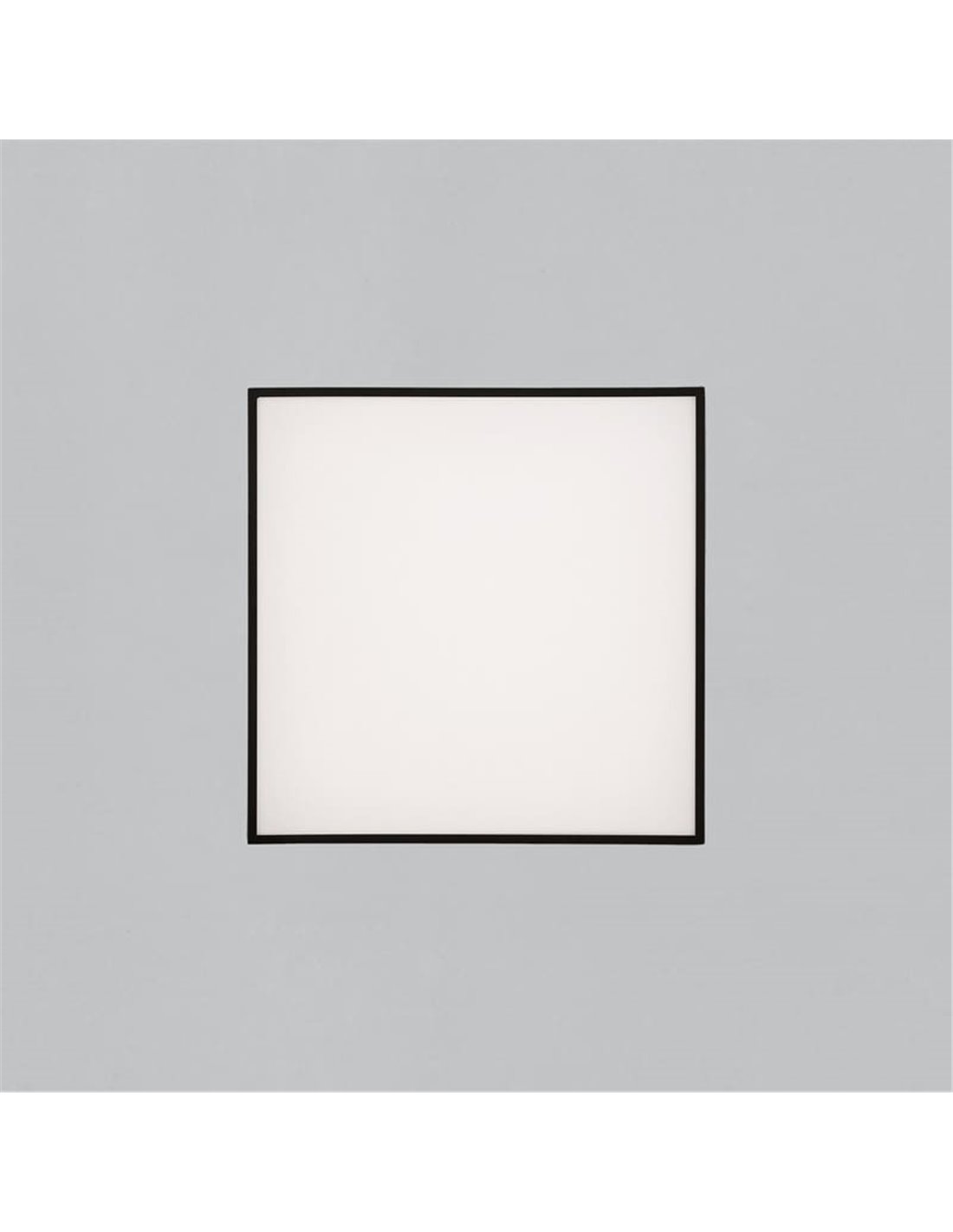 El OPORTO 40 en acabado negro texturado es una luminaria versátil de diseño cuadrado que permite su instalación como plafón de techo o aplique de pared. Está diseñado para ofrecer una combinación equilibrada de iluminación general e indirecta.