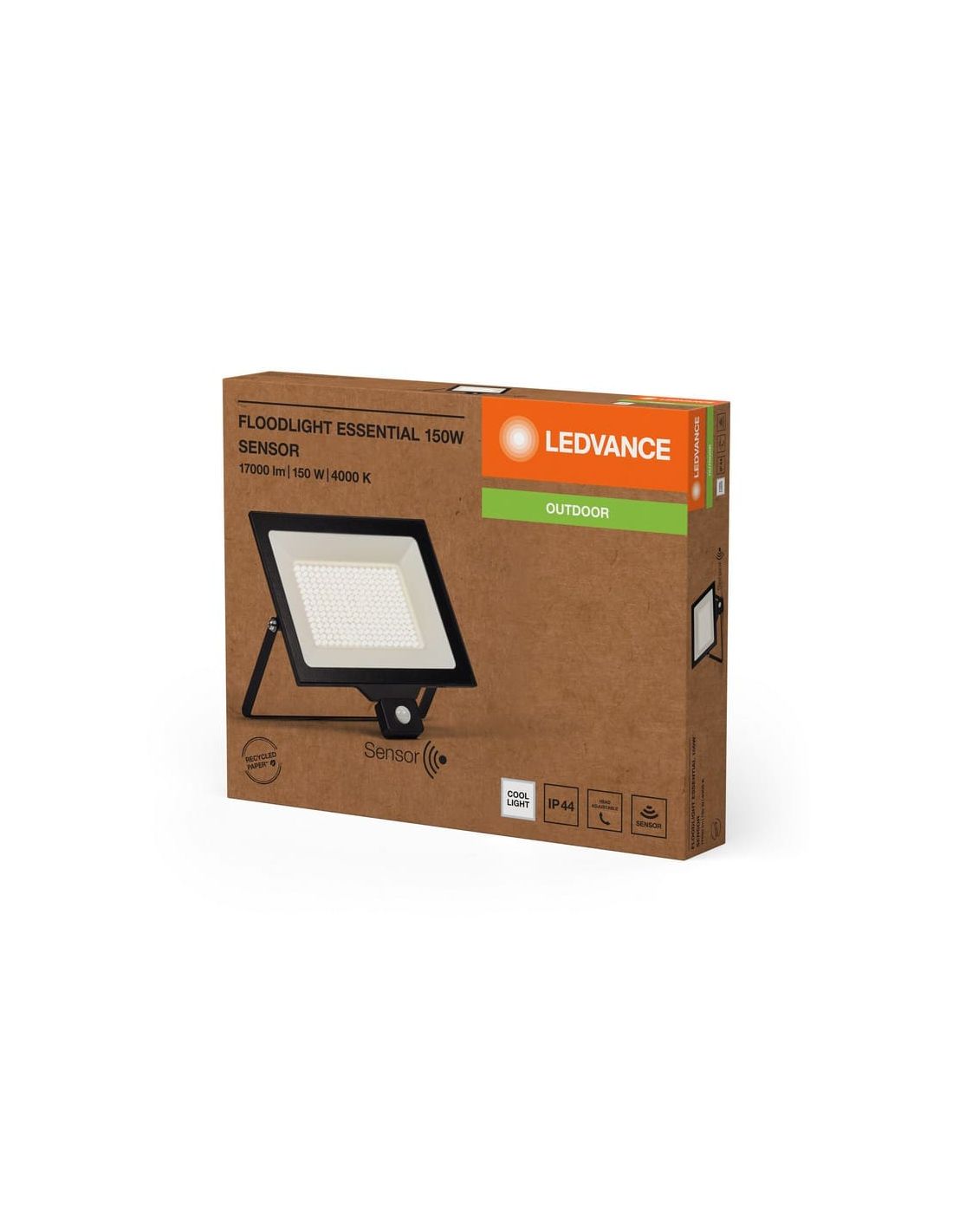 Experimente una iluminación eficiente y segura con el Proyector LED Con Sensor 150W de la gama ESSENTIAL. Con una potencia luminosa de 15.000lm, este proyector negro elegante ofrece una intensa luminosidad que resalta la arquitectura y los detalles exteriores.