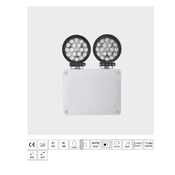 El Proyector de emergencia LED SD 1900 1H NP E 63 850 de Sagelux es una solución robusta y eficiente para iluminación de emergencia en grandes espacios. Con un flujo luminoso de 1900 lúmenes a 5000K, proporciona una autonomía de 1 hora. Su diseño permite instalación adosada a la pared a alturas de hasta 5 metros, adaptándose a diversas necesidades arquitectónicas. Cuenta con protección IP65 e IK08, y está fabricado en materiales resistentes para entornos exigentes.