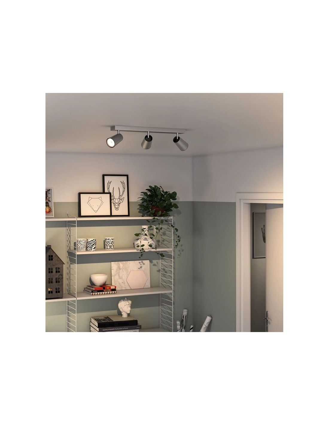 La regleta PAISLEY en aluminio ofrece iluminación versátil para techo o pared. Sus focos orientables te permiten dirigir la luz según tus necesidades. Con un diseño elegante y cabezales ajustables, esta luminaria añade estilo y funcionalidad a tu hogar. Bombillas GU10 no incluidas.