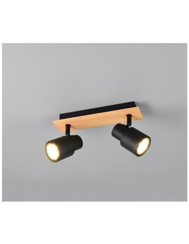 Regleta de 2 focos de techo orientables PIERRE con detalle madera, bombilla excl. 2x GU10 max. 10W IP20 Negro