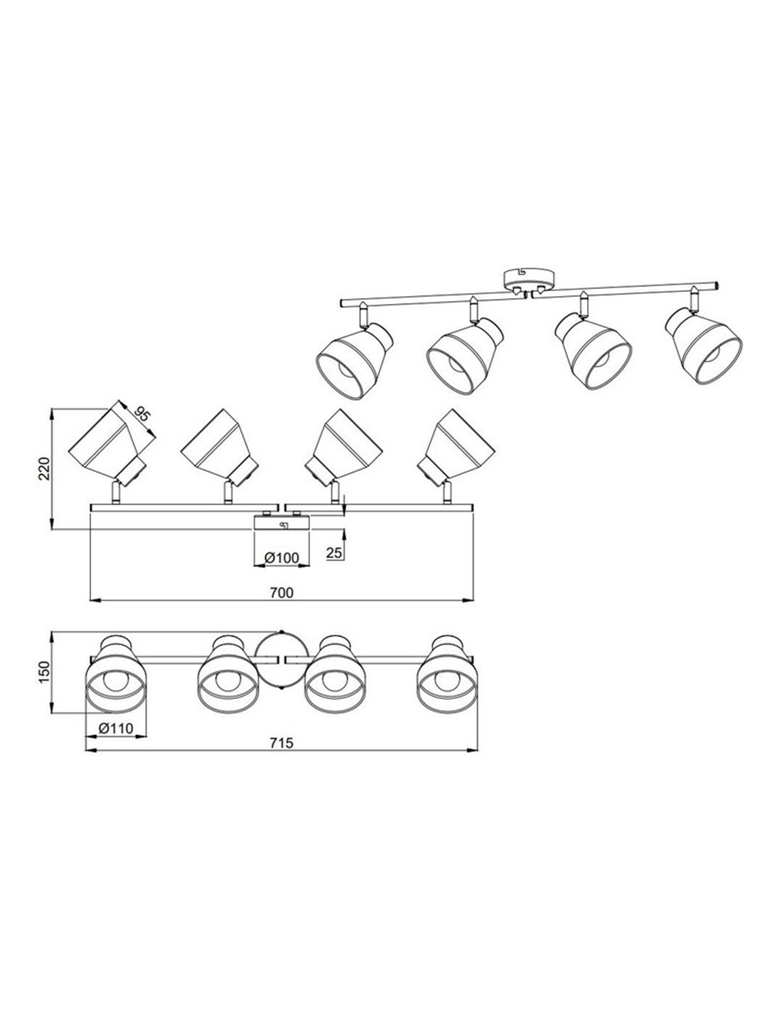 La regleta de 4 focos orientables VALENTIN es una solución de iluminación moderna y funcional para cualquier espacio de tu hogar. Gracias a su diseño versátil, puedes instalarla tanto en el techo como en la pared, adaptándose perfectamente a tus necesidades. Sus focos orientables permiten dirigir la luz de manera precisa, creando ambientes personalizados en tu salón, comedor o pasillo.