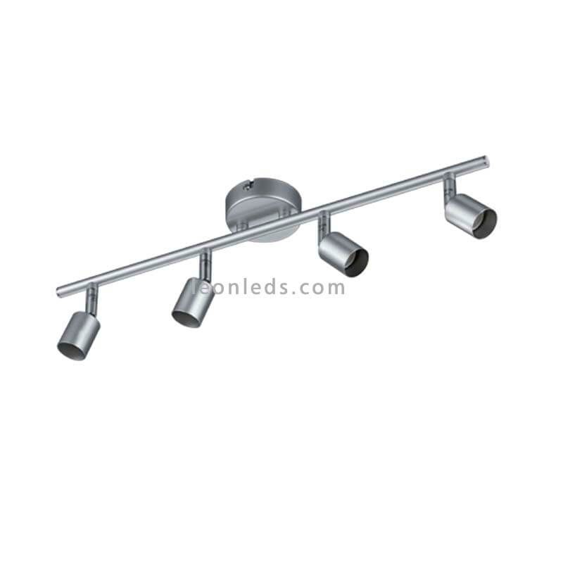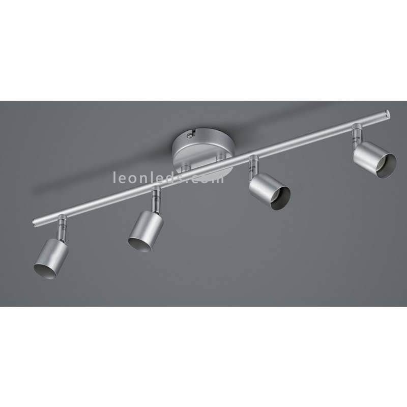 Regleta de 4 focos orientables de color titán de la serie Paris de Trio Lighting, necesita 4 Bombillas LED GU10 (no incluidas), se puede orientar la luz a la zona deseada y su instalación debe ser en pared o techo interior.