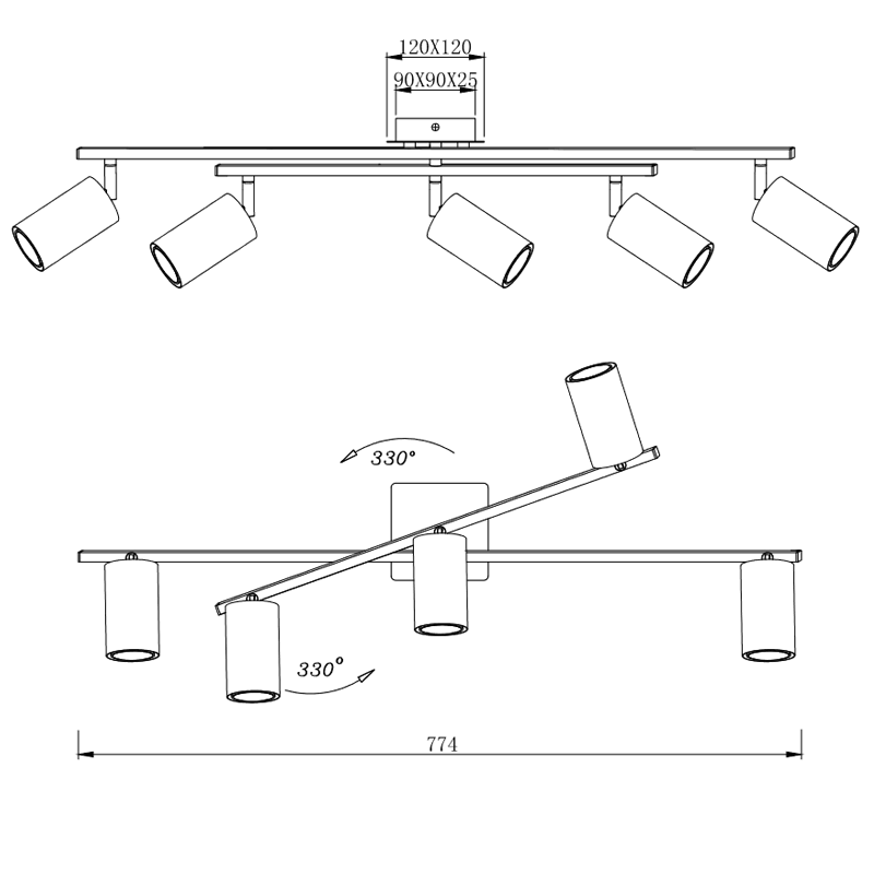 Regleta 5 focos blanca Marley TrioLighting