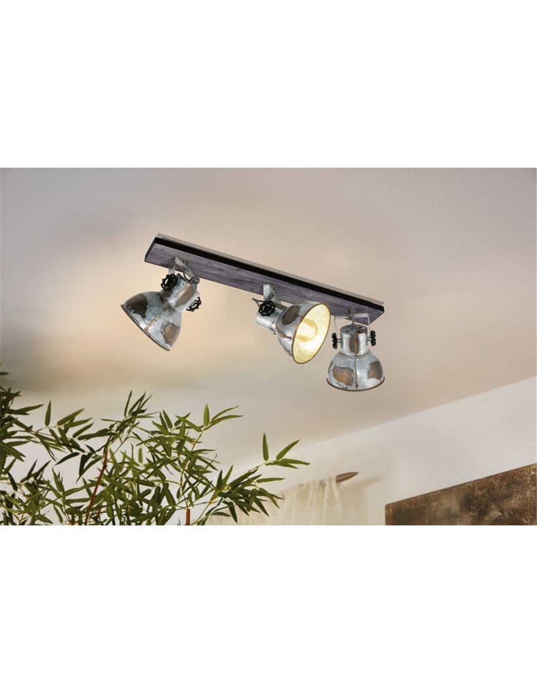 El plafón de techo BARNSTAPLE de EGLO es la elección perfecta para quienes buscan un estilo industrial auténtico en su hogar. Con un cuerpo de metal rectangular y un elemento decorativo de madera marrón, este plafón se convierte en un punto focal en cualquier estancia. Los 3 cabezales de luz móviles con acabado en zinc usado aportan una estética rústica y elegante que complementa a la perfección el mobiliario moderno.