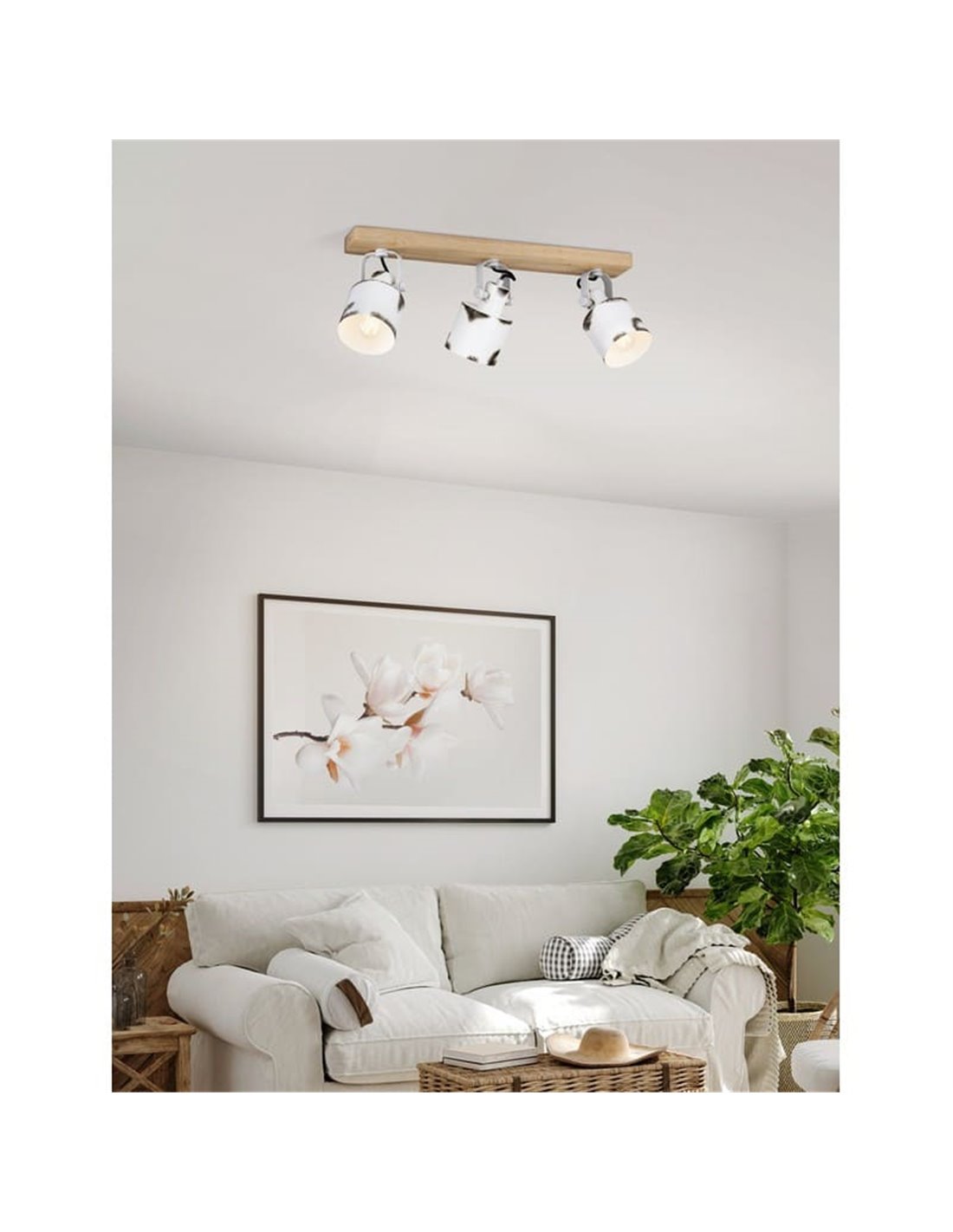 Lámpara de Techo o Pared KILBURN con 3 Focos Móviles de Madera y Metal Blanco