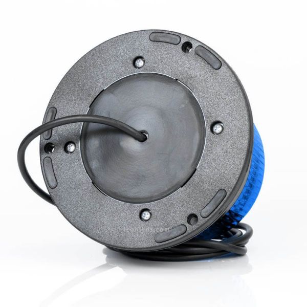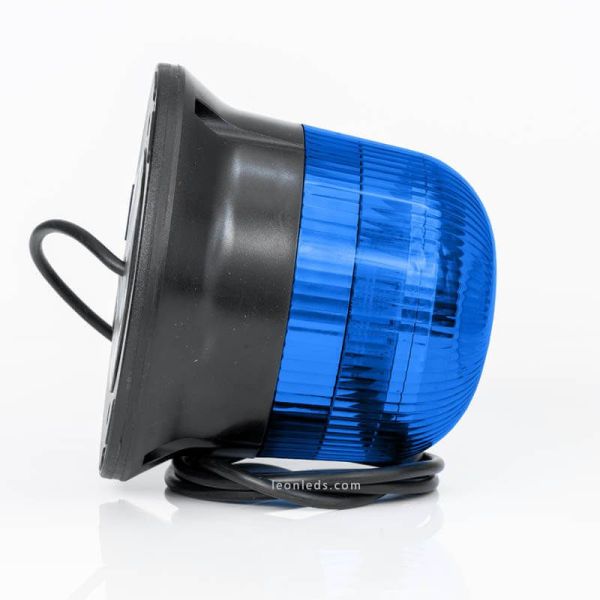 Rotativo LED Azul hmologado con 1,5 metros de cable modelo FT150, valido para voltajes desde 12/55V, su instalación se realiza mediante 3 Tornillos con base plana, un Rotativo LED hermético y sumergible, perfecto si estamos buscando un Rotativo LED robusto, resistente a impactos y homologado.