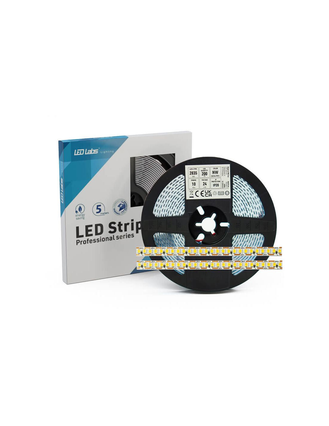 Tira LED 24V profesional con 10W por metro, disponible en 2700K y 4000K, corte cada 5mm, 1410lm/m y CRI>90. Precisión, calidad y alto rendimiento para proyectos exigentes.
