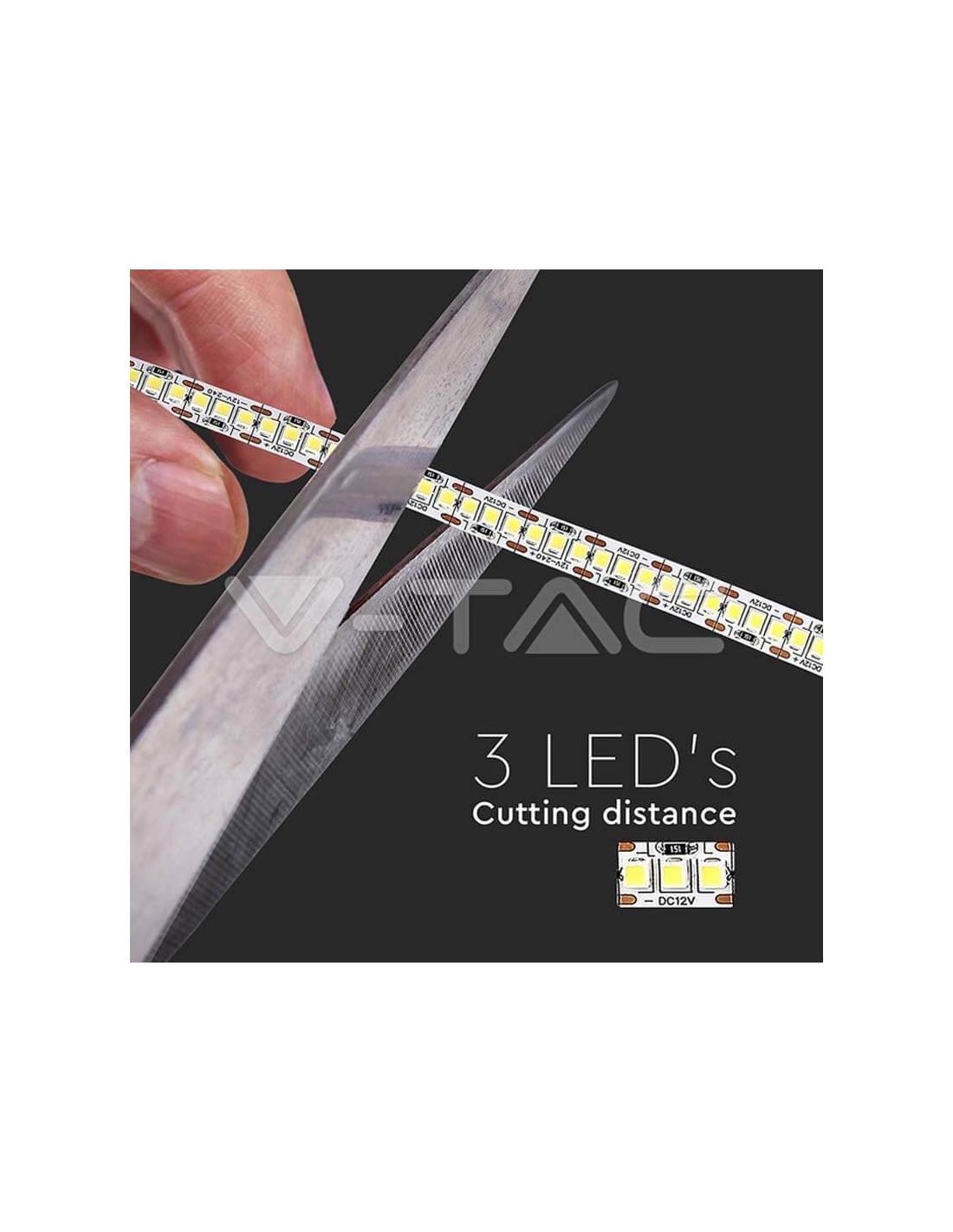 Tira LED SMD 2835 para uso interior IP20. Alimentación 12V DC, potencia 20 W/m, densidad 240 LED/m y flujo luminoso 2000 lm/m. Disponible en 3000K, 4000K y 6400K. Corte cada 3 LED y anchura 10 mm.