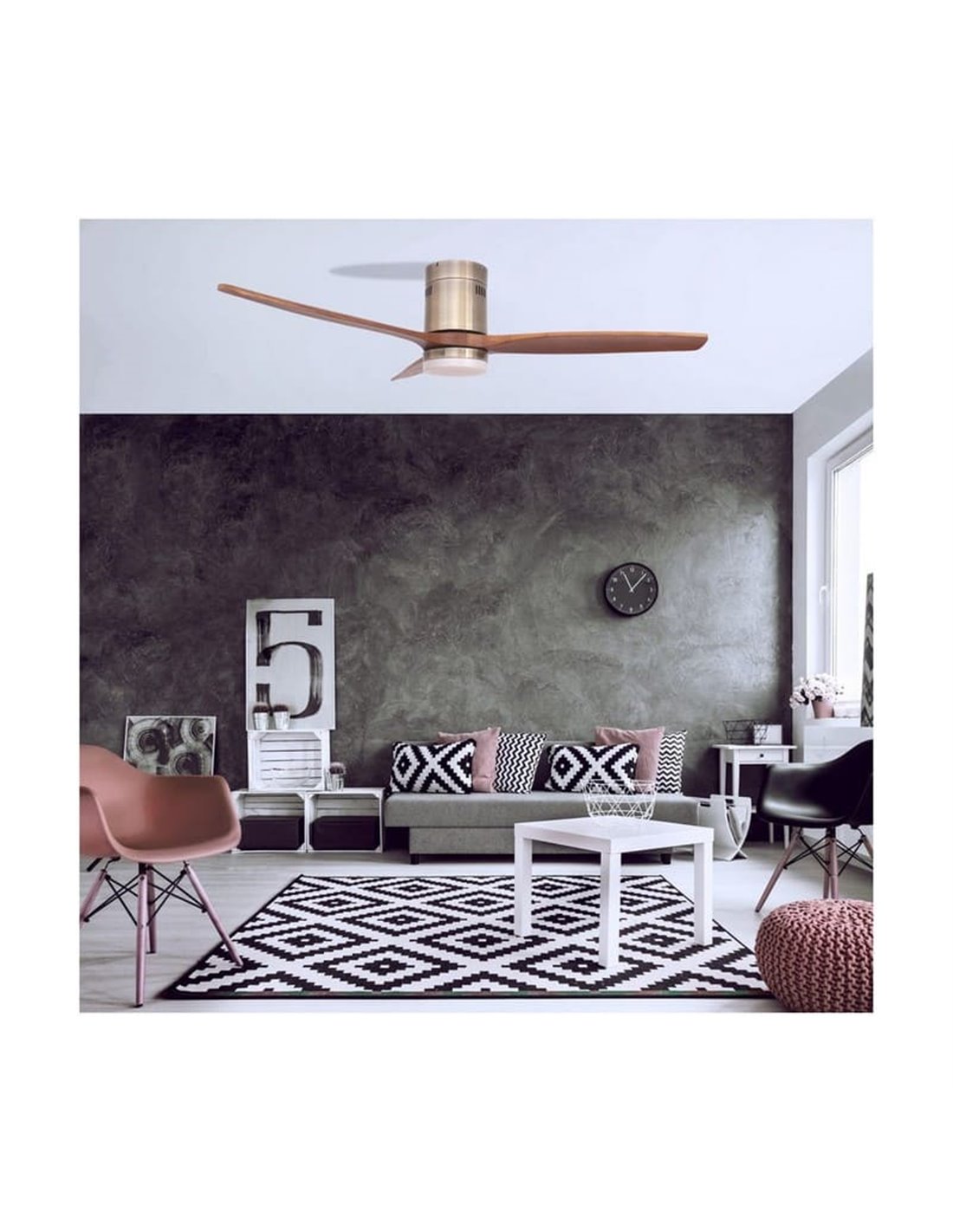 El ventilador con luz LED YEN de CristalRecord es una solución elegante y eficiente para climatizar estancias grandes con estilo. Fabricado con palas de madera natural en tono oscuro, ofrece un diseño sofisticado y cálido que encaja perfectamente en ambientes modernos o rústicos.