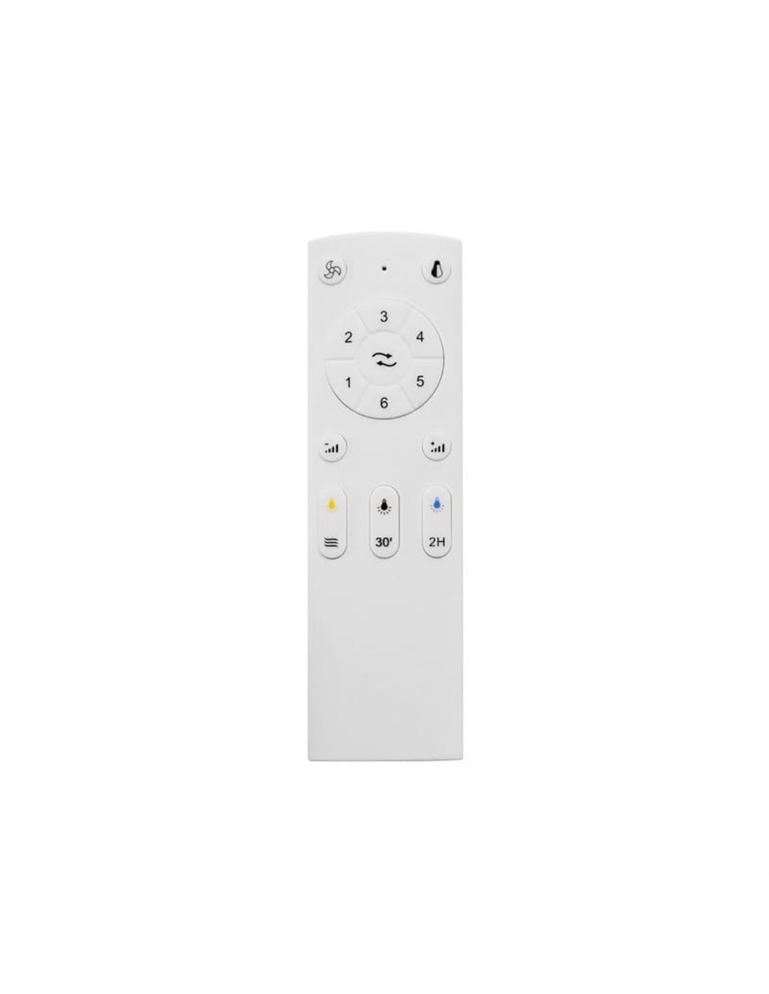 Se instala directamente al techo (sin tija) y no permite ajuste de altura, lo que lo hace ideal para techos estándar. Incluye temporizador de apagado automático con opciones de 30 minutos y 2 horas.