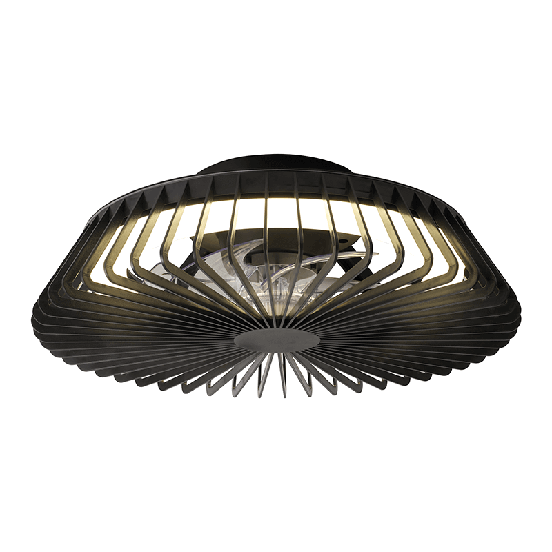 Este plafón con función de ventilador himalaya nos proporciona una luz con 70W de potencia y temperatura de color regulable de 2.700 a 5.000K y de 4.600 a 7700 lúmenes, ofreciendo una tonalidad que permite la creación de ambientes cálidos y confortables a una iluminación fría. Su forma circular y su elegante tonalidad negra lo hace perfecto para ventilar de manera eficiente y discreta.