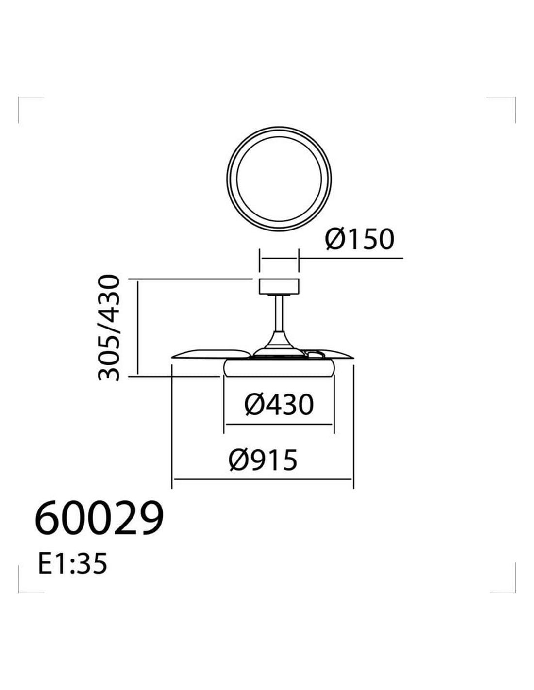 Equipa un motor DC de 35W, diseñado para ofrecer un funcionamiento eficiente y confortable en el día a día. Incorpora luz LED integrada de 30W con tecnología CCT, que permite seleccionar la temperatura de color según el ambiente deseado. Incluye mando a distancia para controlar fácilmente todas sus funciones.