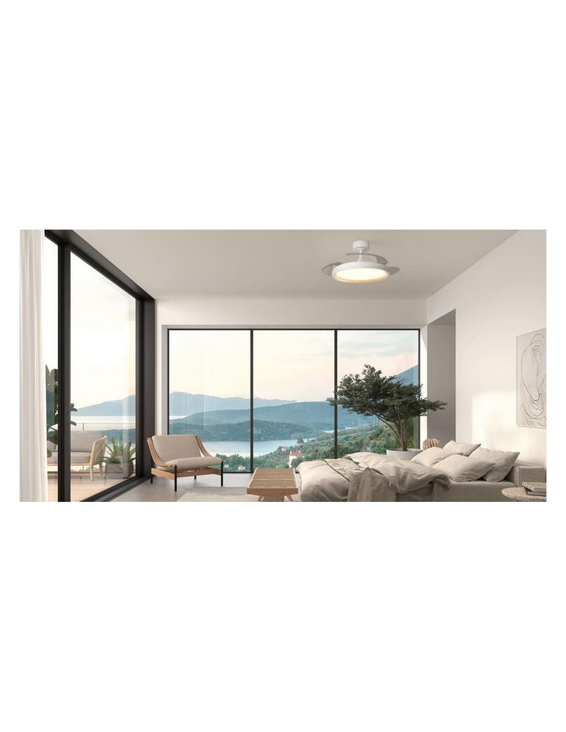 - Ventilador de techo con luz LED integrada.