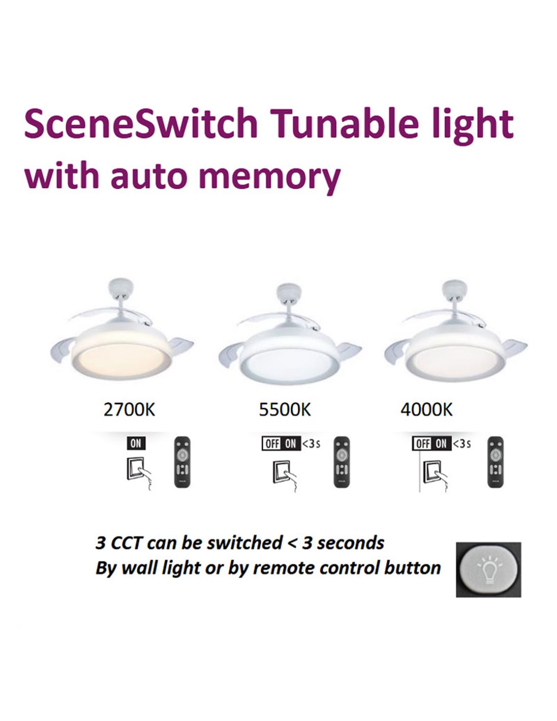 Ventilador de techo LED con aspas retractiles TYNL 106cm blanco 32W+35W 4500lm CCT...