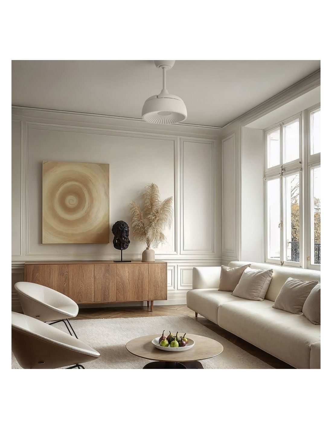 Ventilador de Techo Retráctil BOMBAY ESTILO S con Luz LED Regulable, Blanco Mate