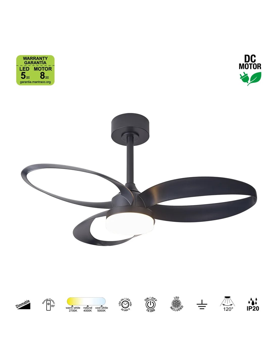 Ventilador LED 30W con aspas THAI 35W Negro 2700K-5000K, 2400 Lm