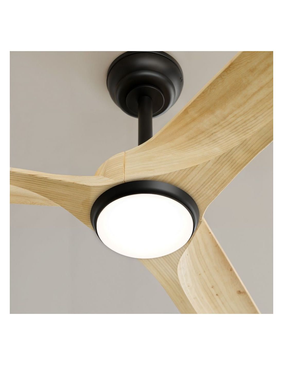 Ventilador de techo sin luz interior/exterior NOVA Ø152cm negro palas madera clara DC...