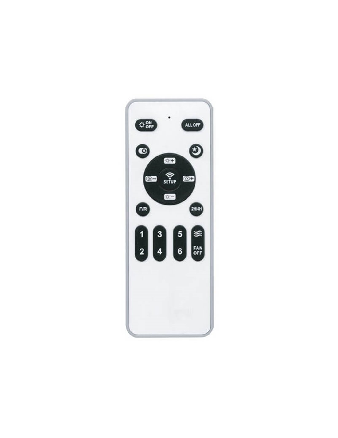 Ventilador de techo pequeño para dormitorios. Ventilador silencioso con seis velocidades ideal para instalar en estancia pequeñas (< 13m3). Fabricado en acero, aspas de policarbonato y difusor de PMMA. Color negro con aspas acabado madera oscura. Puedes programar el apagado del ventilador. Iluminación LED integrada regulable en intensidad y en tono de color. Mando a distancia incluido.
